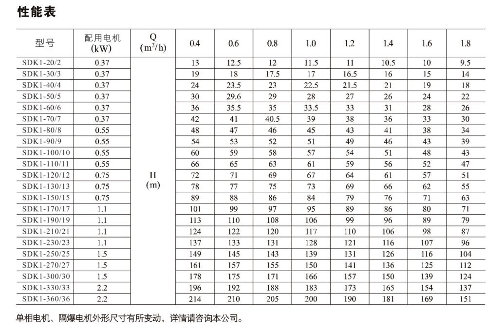 SDK1/SDKT1為配用標(biāo)準(zhǔn)電機的非自吸立式多級離心泵,電機軸和泵軸用聯(lián)軸器直接聯(lián)接的結(jié)構(gòu)。為滿足水槽或容器的安裝深度,可安裝空套的腔體來改變泵本身的侵入深度。