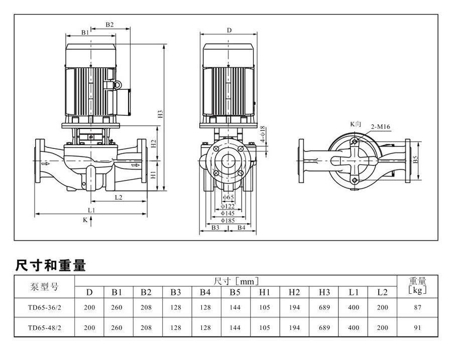 TD65系列單級管道離心泵,配有標準電 機和機械密封。此類產(chǎn)品的結(jié)構(gòu)與相近類型產(chǎn)品相比,更不易受到泵送液體中雜質(zhì)的影響。產(chǎn)品設計為頂部可拉出的拆裝形式,其可 以在不影響管路系統(tǒng)的情況下對泵進行維修。所有泵采用創(chuàng)新式便拆式機械密封,更好機械密封無需拆卸電機。